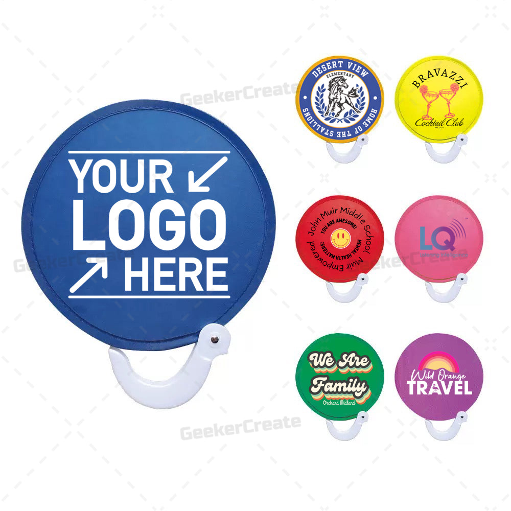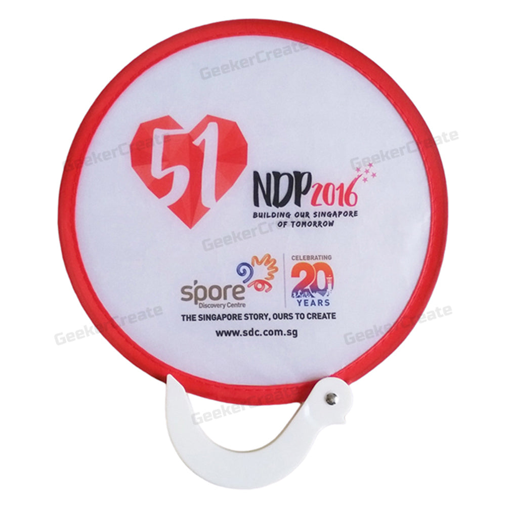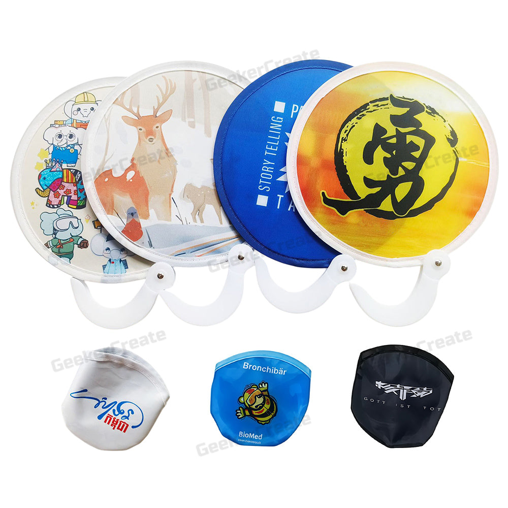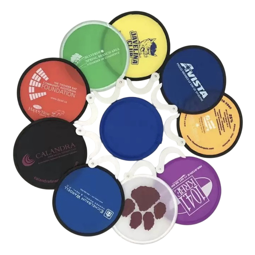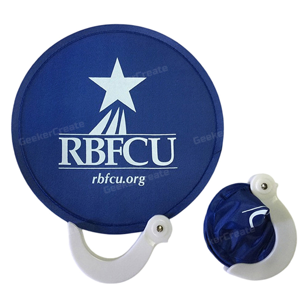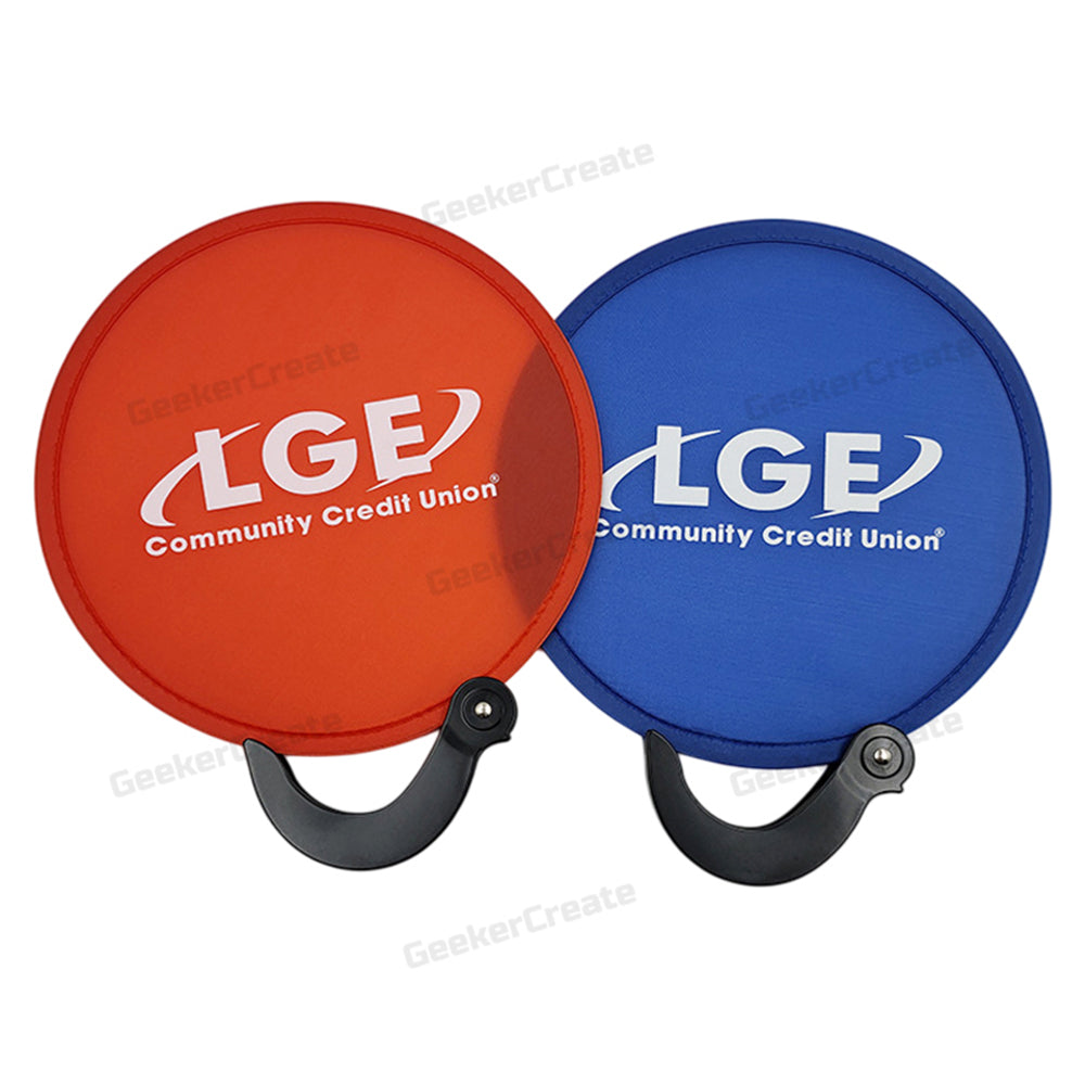 Beat the heat and boost your brand with our unique Custom Foldable Flying Disc Fan—a functional giveaway that’s as memorable as it is practical. Shaped like a circular disc, this innovative fan unfolds to reveal vibrant fabric panels, offering a 360-degree canvas for your full-color logo, artwork, or message. Crafted from durable, reusable fabric with a comfortable handle, it folds down compactly to fit in a pocket or bag, making it the perfect companion for outdoor events, trade shows, corporate gifts, or summer promotions. Whether you're cooling off attendees at a festival or leaving a lasting impression at a grand opening, this eye-catching fan combines utility with standout branding. Order today and keep your message in their hands all season long!