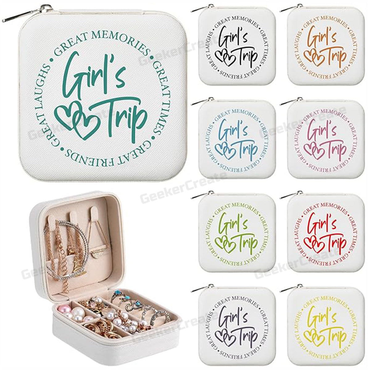 🎁 Custom Printed White Jewelry Box PU Leather Travel Storage Organizer